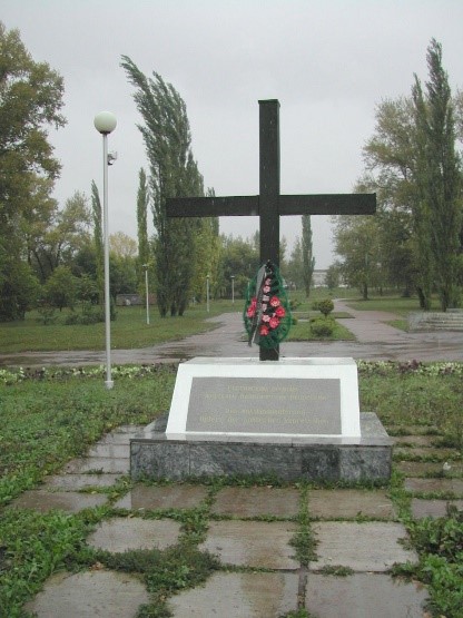 Part of the graveyard was destroyed as the city expanded in the 1960s and 1970s; another part was turned into the square of the 50th Anniversary of Victory. In 2000 the government of the Republic of Bashkortostan funded the erection of a monument on the square to the victims of political repression: a column 6 metres high behind which there is a bronze sculpture of a mother with an infant in her arms. A separate cross on a plinth was also erected to “Russian Germans: Victims of Political Repression”.