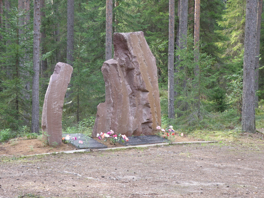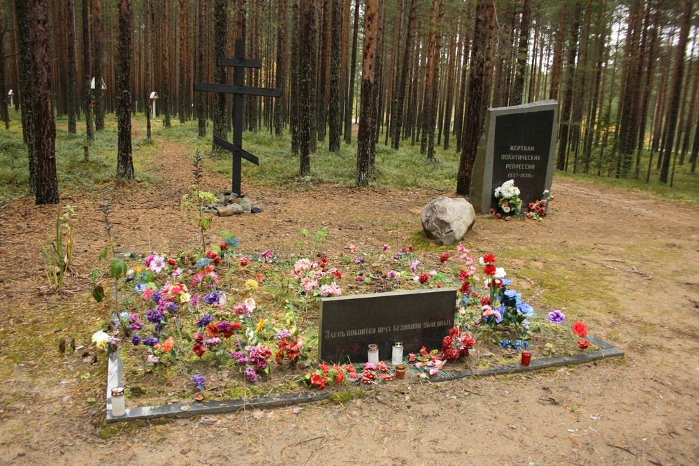 Those exhumed in 1997 were reburied on 30 October 1998 in a common grave by the entrance to the cemetery. Two granite stones stand over the grave with the inscriptions, “To the victims of political repression” and “Here lie the remains of the slain innocents”. On 30 October 2006 Yury Dmitriev organised the inauguration of a memorial “to the victims of Red Terror”; on 17 October 2009 the commemorative cross erected by the Karelian Society of Cossacks was consecrated; and on 30 October 2010 a memorial cross was erected by the Sixth Congress of Karelians.