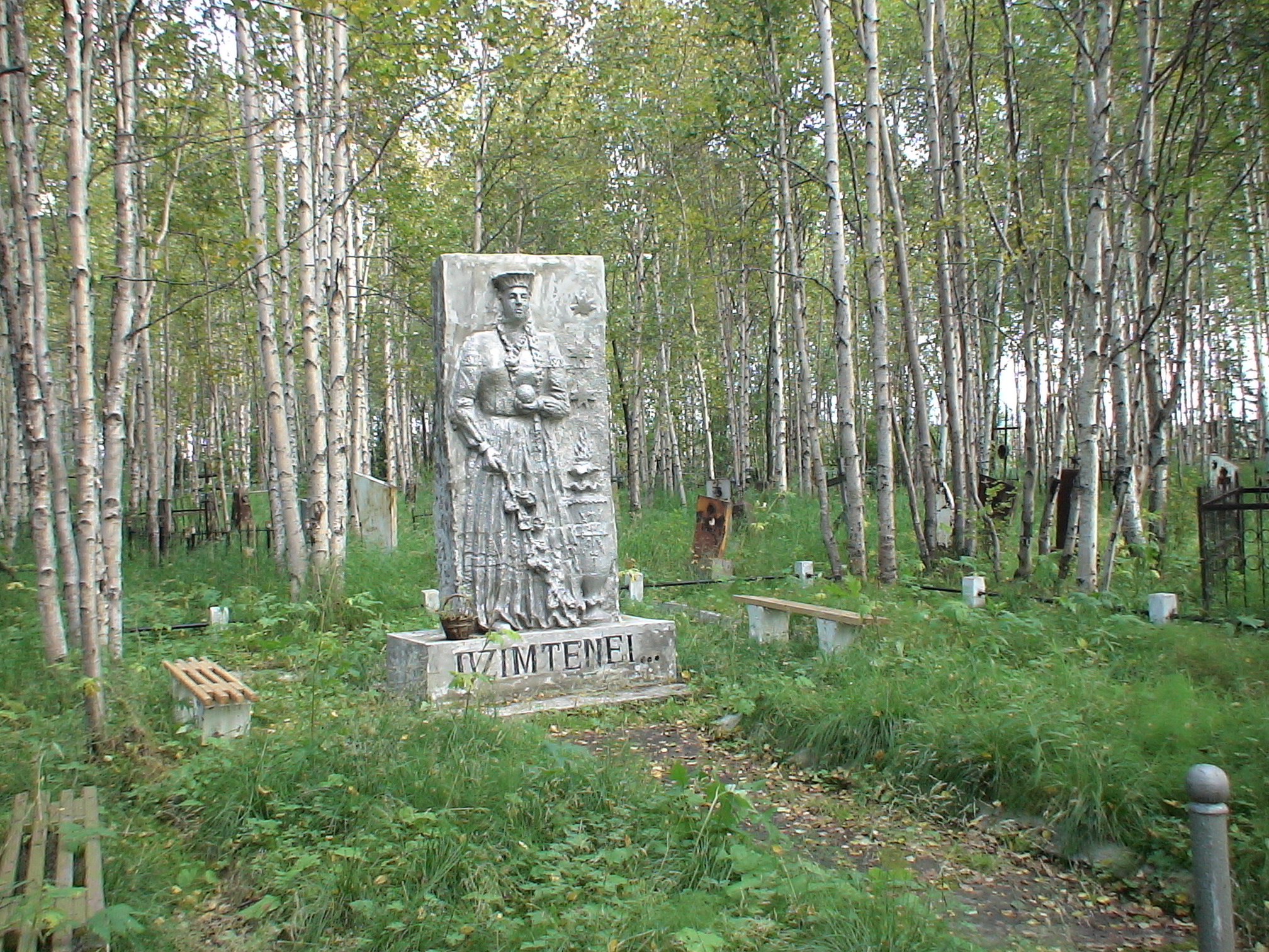 In 1989 an action group from the Vostochnaya (eastern) mine cleared and tidied the burial ground and restored the surviving monuments. On 18 August 1990 the “Rupintojelis” (lamenting Christ) memorial was erected by the Vilnius Society of Political Exiles: it was consecrated by Bishop Kazimir Vasilauskas, a former Intalag prisoner. The sculptor was Jonas Judisus, son of brigadier-general I. Judisus who died in captivity in Abez. The inscription, in the Lithuanian, Komi and Russian languages, reads: