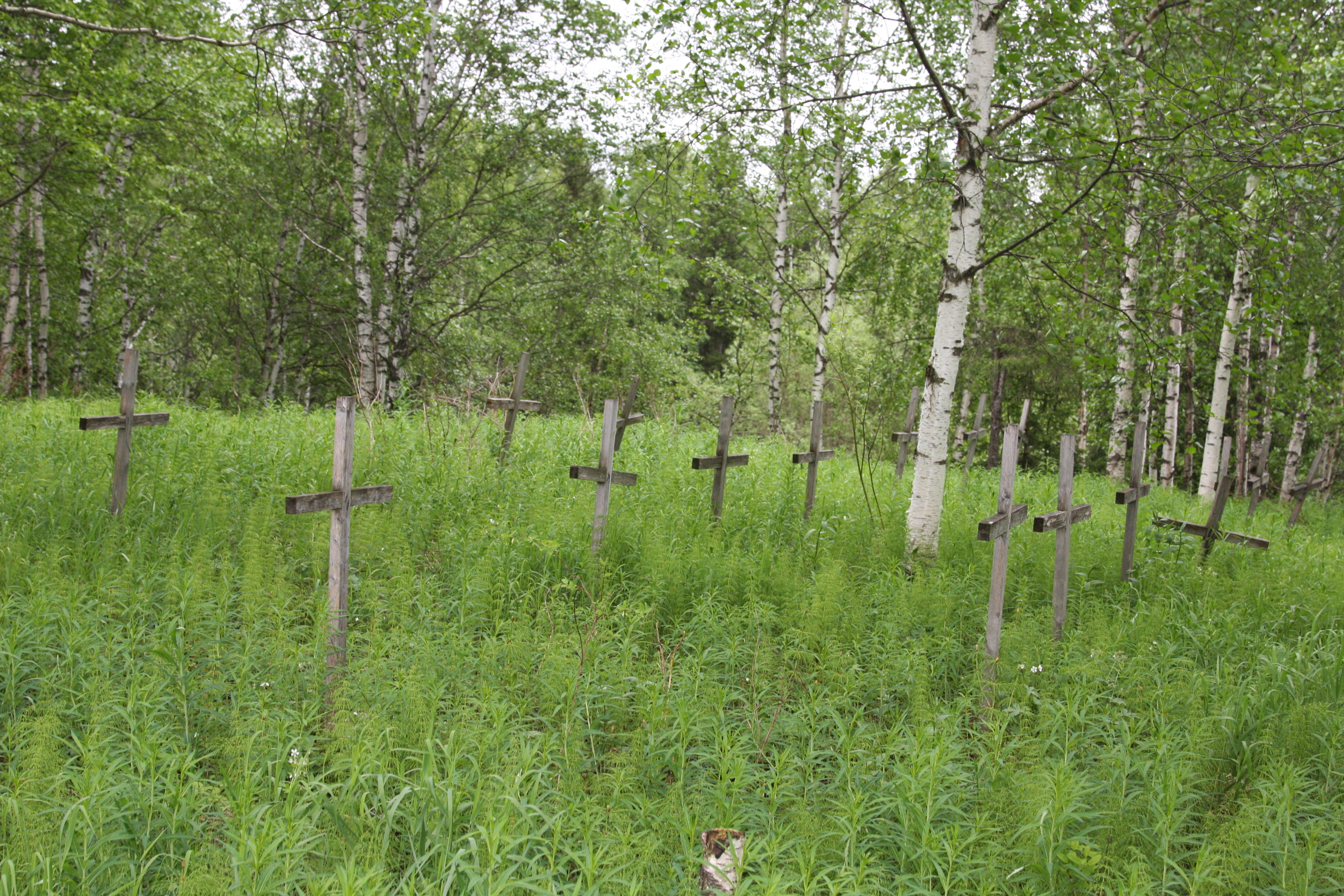 Today the burial ground is within Inta town limits and forms part of the Southern sub-district; a section of the territory is used for garden allotments. In the 1970s some of the grave markers were destroyed (the crosses were thrown in the river) as dachas were built there. In 1988 the burial ground was visited by a youth expedition from Lithuania who raised the crosses and placed them in the surviving section of the burial ground. In 1990 a Ukrainian delegation erected a wooden cross with the inscription, “May the victims of the Communist terror, fighters for a free Ukraine, never be forgotten”.