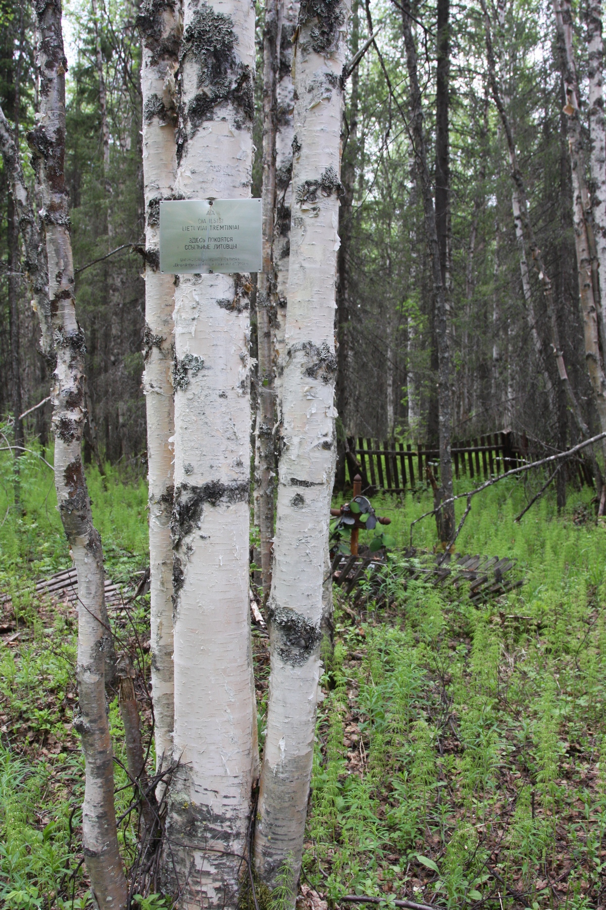 The graves and grave-markers of former prisoners and deportees (1956-1960) are well preserved. In 2004 the graveyard by investigated by a joint Lithuanian-Inta Memorial group. Two years later members of the Lithuanian Council of Youth Organisations (“Exploration of places of exile and death”) attached a metal plaque to a birch tree bearing the text (in Russian and Lithuanian) “Here lie deported Lithuanians / A†A Čia ilsisi lietuviai tremtiniai, Lietuvos jaunimo organizacijų taryba “Ekspedicijos i, trėmimo ir žūties vietas” (2006).