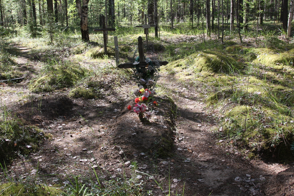 By the early 2000s several dozen burial mounds with fallen crosses had survived. The numbers buried there has not been established. In 2001 a local history expedition of the Kortkeross Centre for Schoolchildren’s Extracurricular Education led by A.A. Smilingis studied the graveyard, drew up a plan of the burials and tidied part of the area. In June 2001 a memorial cross was erected and consecrated at the site, bearing the inscription, “Burials of the Second Section special settlement, 1942-1964”.