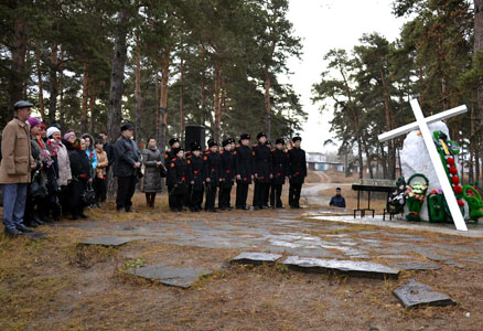 In the 1990s the Memorial Society in Minusinsk studied the territory and interviewed witnesses. In 1992 thanks to Memorial’s efforts a monument (designer V.Yu. Fomaidi) was established on the site, a marble boulder with a metal cross leaning over it. The boulder bears the inscription, “To the victims of repression who died in Minusinsk in the 1930s to 1950s”. The memorial was funded by donations from individuals, enterprises and organisations in the city.