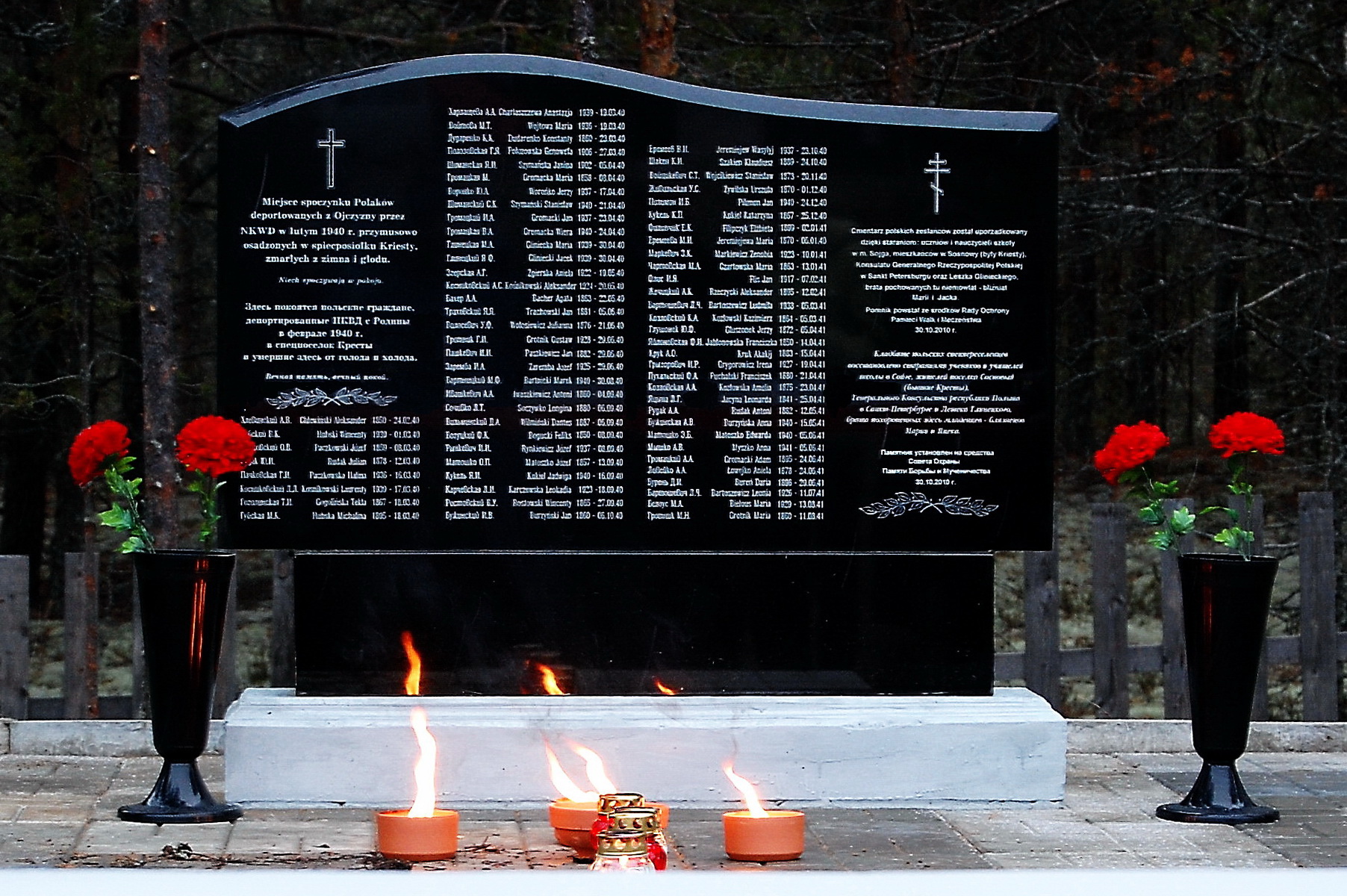 Those who died were buried not far from the settlement in individual and common graves. The exact number buried there is unknown; a list of 70 Poles who died in Kresty has been compiled. In the 1950s and 1960s unidentified bodies were occasionally buried there. Later it fell into disuse.