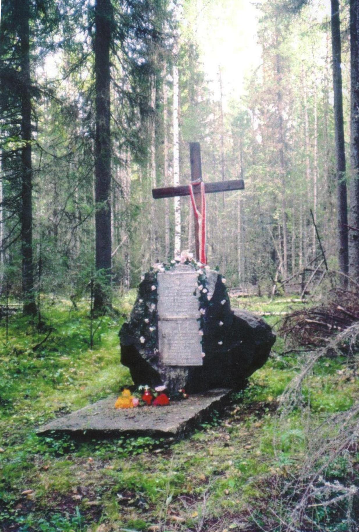 The name of one prisoner, the Pole Jan Szubert, is known: he died in the camp on 9 July 1941. In 1996, Szubert’s sister Apolonia Sobolewska had a cross erected in the former camp burial ground in memory of all the prisoners who were buried there. The inscription on the cross (see photo), in Russian and Polish, reads: “To our fathers, brothers and sons … Rest eternal! May they be remembered forever – the Poles, Russians and all who died in the Konetsgorskoe division of the Gulag. From compatriots in Poland. Rochegda, June 1996.”