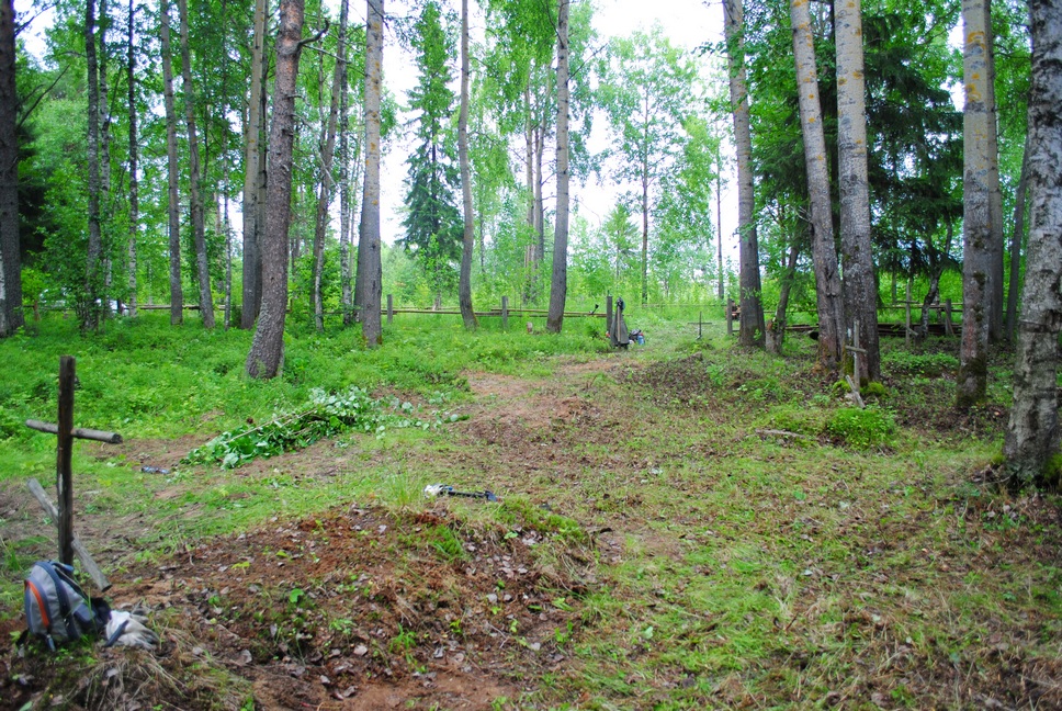 Traces of burial subsidence, today marked by wooden Orthodox crosses