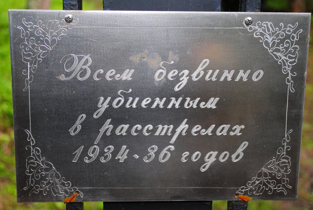 An exploratory group (A. Sukhanovsky, I. Ivlev, V.A. Mitin, N.V. Sukhanov and others) searched from the end of the 1980s for the burials of those shot. They found one such location in the woods near the Severodvinka gardening cooperative. Test digs were carried out in October 1989, and the remains of people with bullet holes in their skulls were found, laid out in several rows. The Primorsky district prosecutor’s office studied the burial site and expert examination of 42 skulls confirmed that they had been shot in 1934-1936.