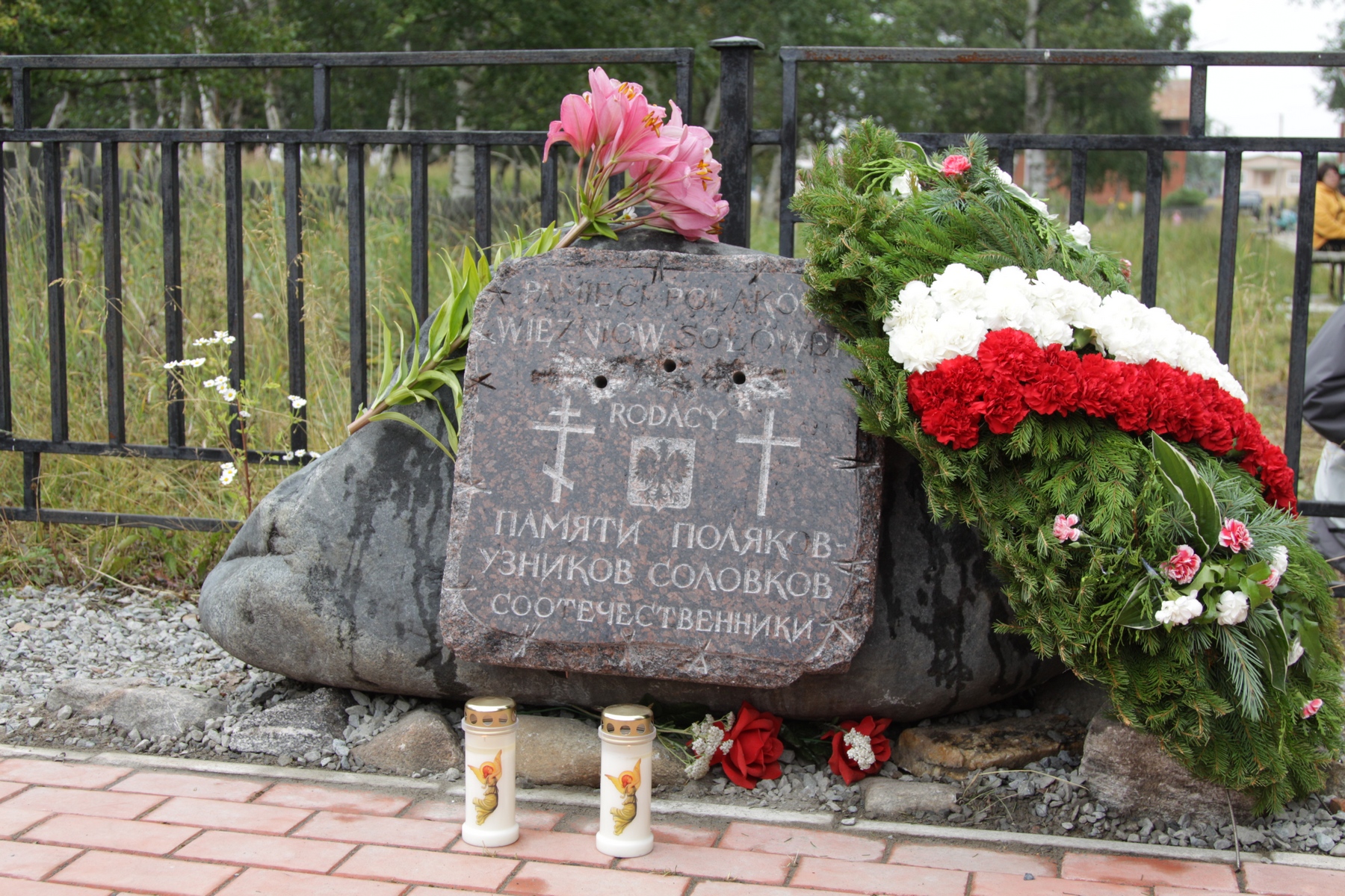 In 2005, the memorial square was laid out with paving stones and fenced in. Today this is the memorial complex in memory of the Solovki Prisoners. It includes the 1989 memorial to the Solovki Prisoners, the commemorative orthodox cross (1999), the memorial to Yakuts who died in the camp (2009), the memorial to Poles imprisoned on Solovki (2011), the memorial to Ukrainians imprisoned on Solovki (2012), the memorial to the Socialists and Anarchists imprisoned on Solovki (2013) and the memorial to the Scouts imprisoned on Solovki (2014).