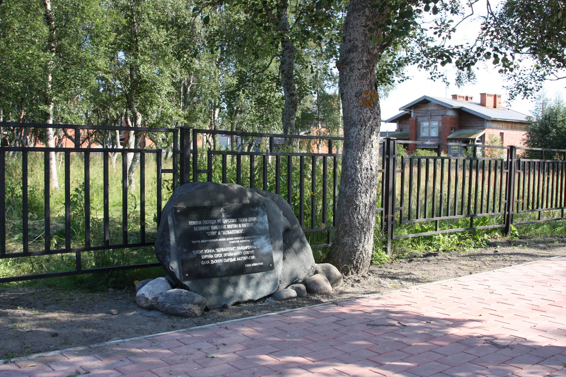 At present a civil hospital and some residential buildings, built in the 1960s and in 1990-1992, occupy the area. In June 1989, thanks to the efforts of the Solovetsky Museum and the Memorial Society, the Solovki Stone was placed here. In late May 1990 when cottages were being built for museum staff remains were discovered here; they were reburied in the settlement graveyard. In summer 1998 an Avenue of Remembrance of birch trees was planted on the site. In June 1999, thanks to the efforts of the Association of Anaesthetists of Northwest Russia, a cross was erected next to the stone to mark the 60th anniversary of the camp’s closure and in memory of those shot in 1933. On 26 July that year the cross was consecrated by Archimandrite Josif, the incumbent of the Solovetsky Monastery.