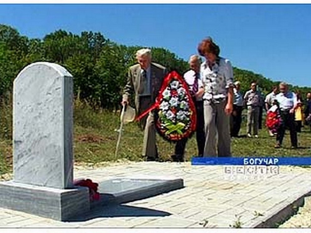 In 2004 during work at a sand quarry [36-06] within the present town limits some of their remains were discovered. They were reburied in the town’s Severnoe (northern) cemetery, and a memorial was raised over the common grave. In 2007 five more execution pits were discovered in Boguchar, each containing the remains of between five and 12 bodies. In August 2007 the remains were solemnly reburied at the Severnoe cemetery. The following year, on 8 August, a granite pillar bearing the words “To the victims of political repression” was erected in the same location. In 2012 a decision was taken to combine the two mass graves into one.