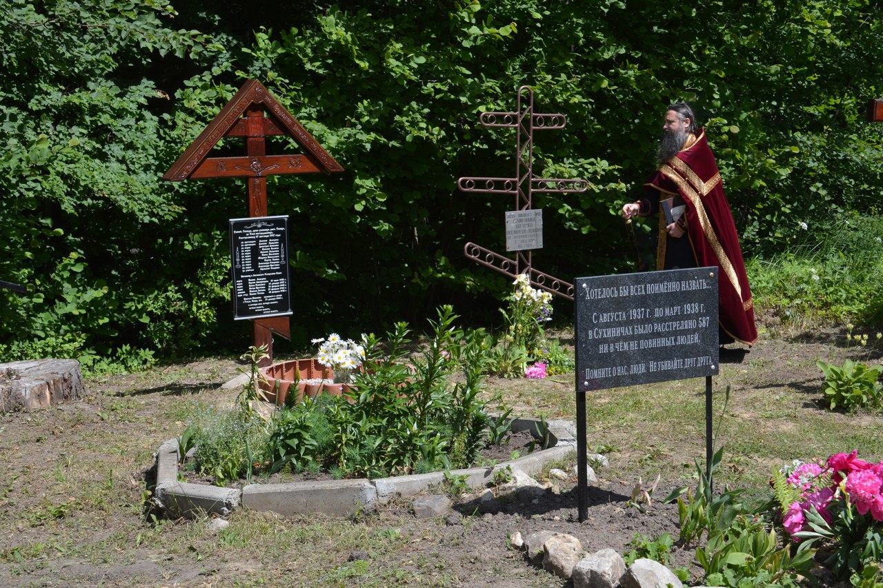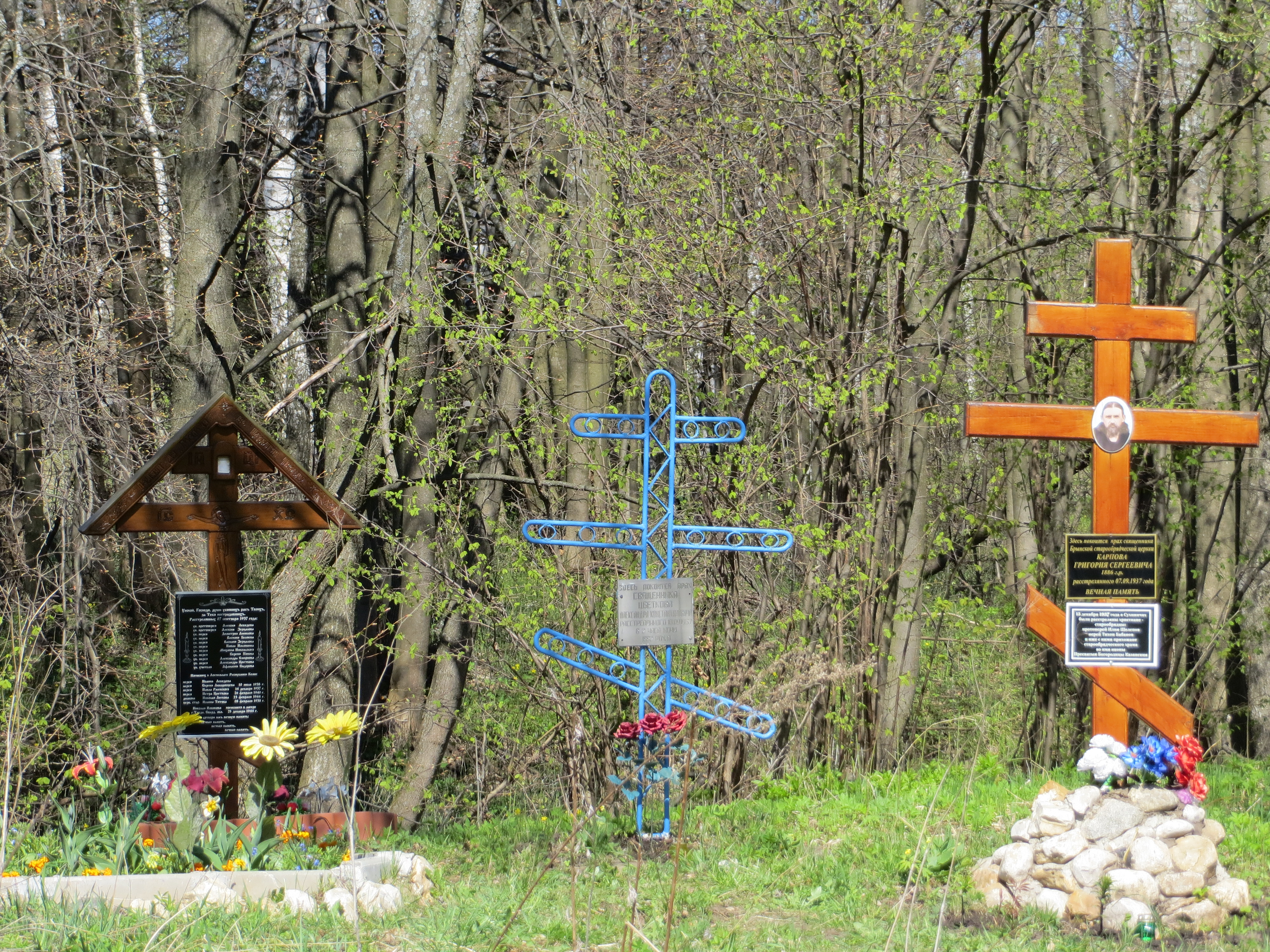 During the Great Terror the ravine on the outskirts of the town, near Bordukovo village was used for executions and burials. The numbers shot here have not been established. Only the names of 14 individuals executed on 7 September 1937 are known: 7 Orthodox priests, three priests of the Old Believers and a teacher. In the 1980s a local inhabitant, a former guard at the city prison, indicated the location of the burial and named one of those shot there, Father Alexander Tsvetkov. The priest’s daughter then erected the first (metal) commemorative cross on the site. Subsequently relatives of those executed there added two more memorial crosses.