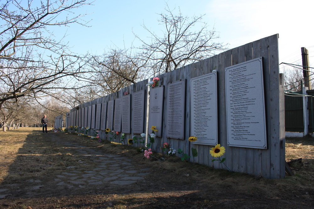 On 27 September 2017 the “Garden of Remembrance” memorial complex opened in the eastern part of the grounds, where there were no burial trenches and KGB staff had planted an apple orchard in the 1970s. The Garden of Remembrance takes the form of an avenue between symbolically open execution trenches (designer A. Zhernakov). One wall is made up of granite slabs on which the names of 20,762 people have been etched and presented in sequence by their date of execution. The slabs are two metres high, and the complex is 300 metres in length.