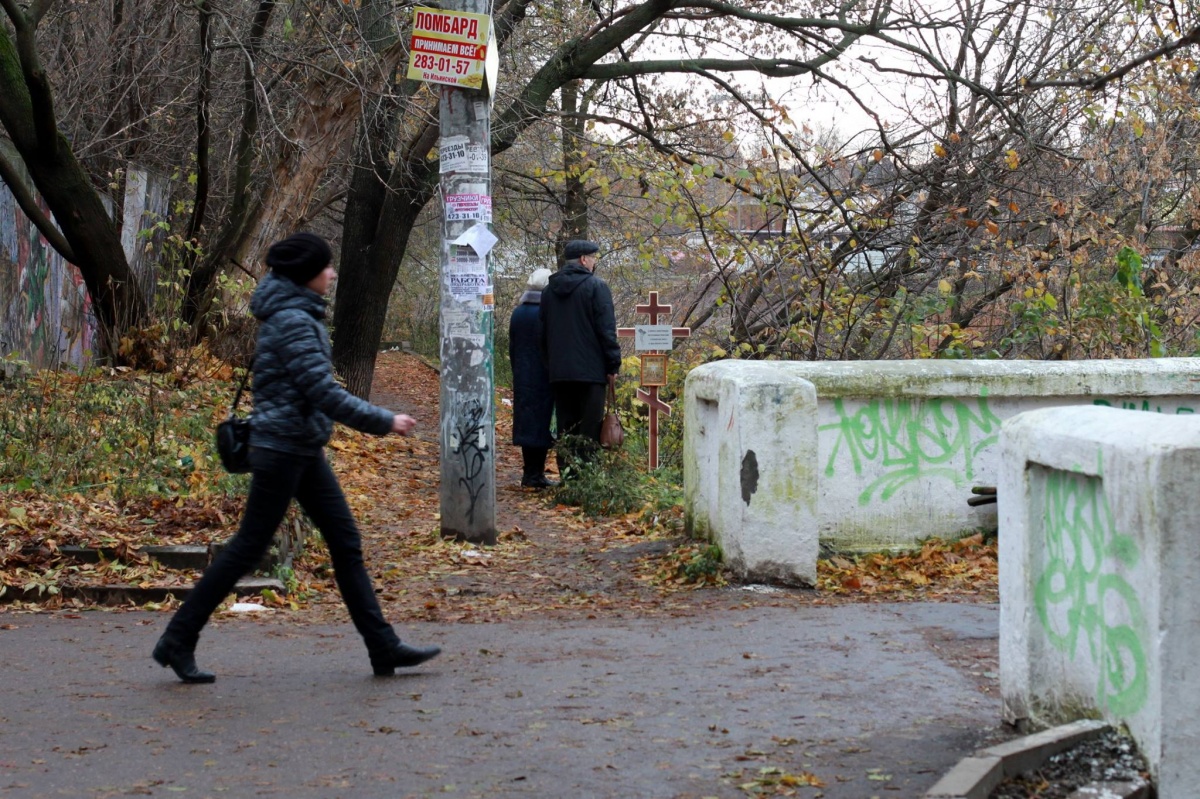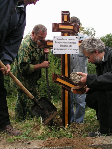 In 2002 a wooden cross in memory of those shot was erected on the edge of the Pochainsky Ravine. Soon unidentified persons took it down. On 5 September 2004 the Nizhny Novgorod Memorial society successfully erected a new cross with the inscription: “Here in the Pochainsky Ravine citizens of Nizhny Novgorod were shot and buried, victims of the Communist terror”. In 2005 the cross was again dismantled.