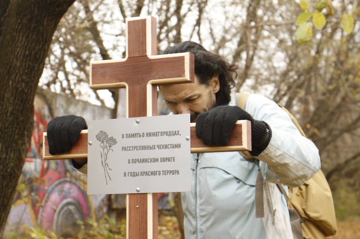 On 30 October 2017, thanks to the activists S. Novikov and S. Dmitrievsky, a new cross was erected. It bears these words on its plaque: “In memory of the citizens of Nizhny Novgorod who were shot by the Cheka in the Pochainsky Ravine during the Red Terror”.