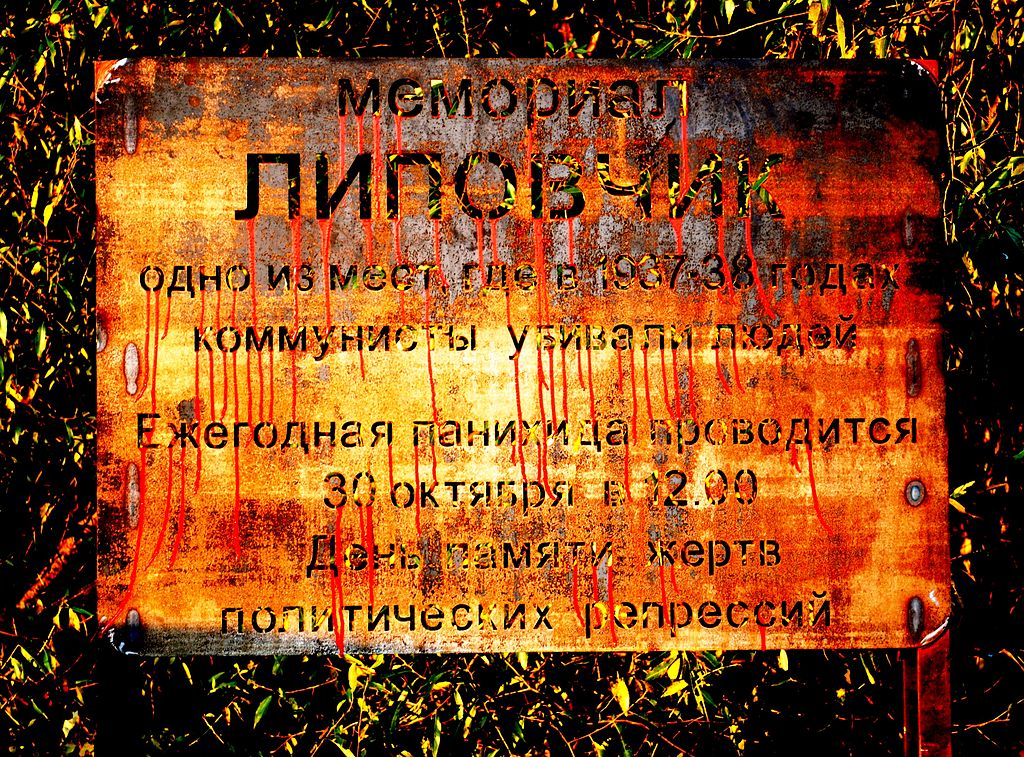 On 17 December 1992 a memorial to the Victims of Repression (designer, A.S. Nikitin) was opened at the site. It is composed of several elements: a pillar with an Orthodox cross and an inscription “To the victims of Stalinist repression, 1937-1938”; 28 marble plaques bearing the names of those shot; and a wooden cross-golubets. A noticeboard by the road through the wood carries the text: “The Lipovchik memorial marks one of the places where Communists killed people in 1937-1938. Each year a Service for the Dead is held here at midday on 30 October, the Day in Commemoration of the Victims of Political Repression”.