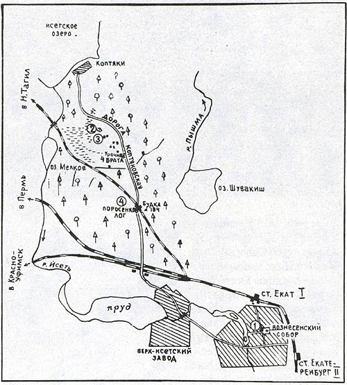 ![Ganina Yama, map showing last stages in life of imperial family(1993) Карта-схема окрестностей Екатеринбурга с указанием мест, связанных с последним путем последнего российского императора. Источник: Последний путь: Буклет. – [Свердловск,] 1993](https://en.mapofmemory.org/sites/default/files/styles/slide-card/public/card/1411470934/66-03-3.jpg?itok=QBNXKExp)