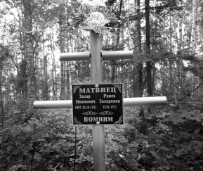 In 2011, three descendants of the dekulakized families who were sent to Borisovka from Siberia (Ye.F. Kel, V.F. Kel and I.I. Kosov) visited the area and erected crosses where the graveyard is supposed to have been. These commemorate members of the Kosov and Matviyets families. “In memory of peasants from the Irtysh area of the Omsk Region, who suffered and were unjustly ruined during the years of Stalinist repression: Andrei N. Kosov, 1887-1932, d. Borisovka; Darya G. Kosova, 1886-1946, d. Tomsk; Stepan A. Kosov, 1916-? d. Borisovka; and Timofei A. Kosov, 1927-? d. Borisovka. May You Rest in Peace! From your grateful descendants” reads the plaque on one cross. That on another says, “Zakhar I. Matviets, 1897 to 23 October 1932 and Raisa Zakharovna [Matviyets], 1928-1931. We remember”.