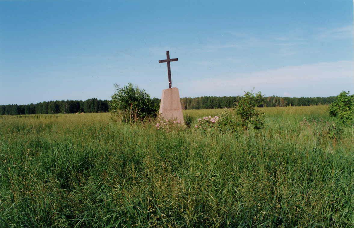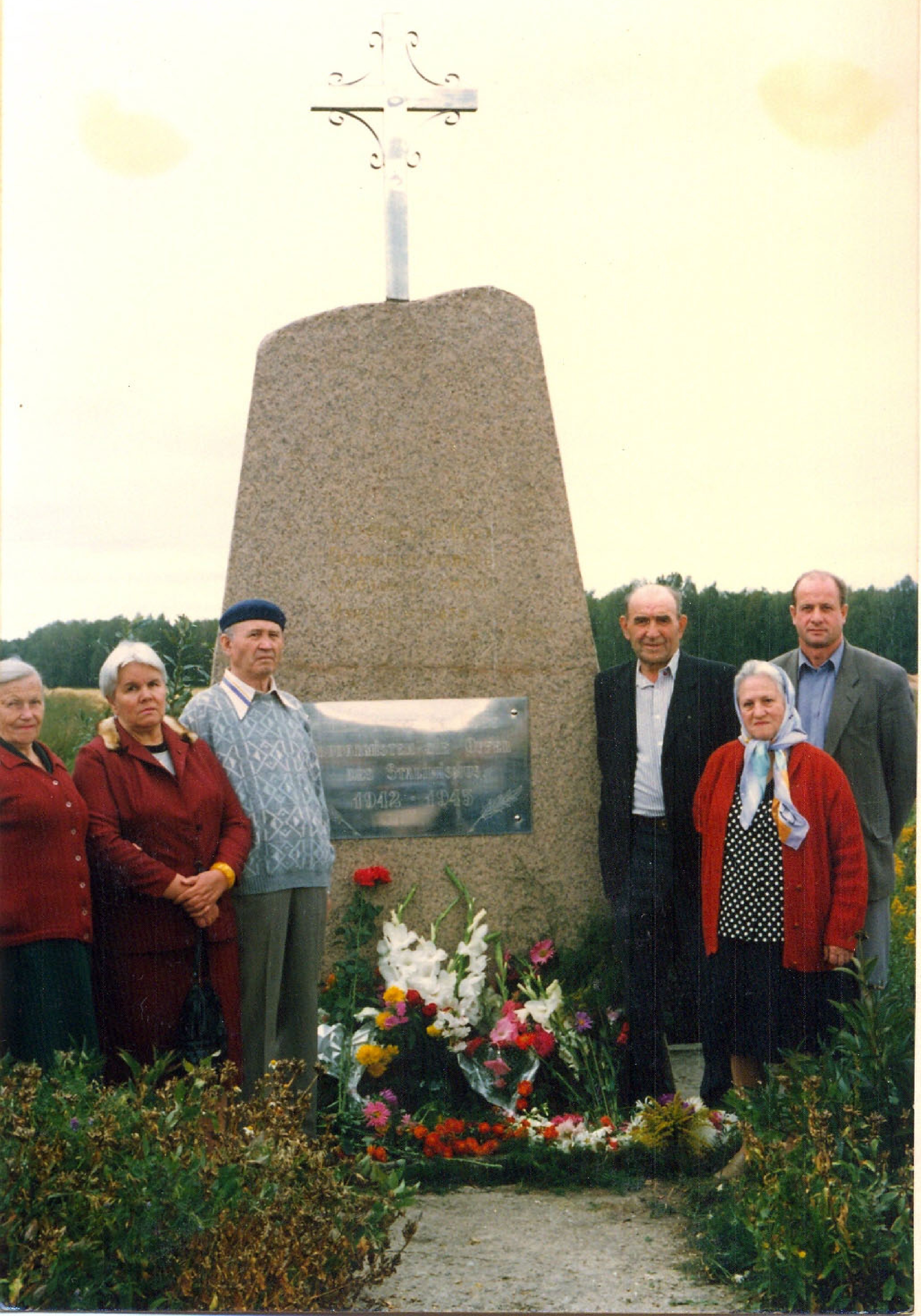 Subsequently the metal parts of the monument were stolen. The cross was lost and the metal plaque, found at the processing centre for non-ferrous metals, was given to the Church of the Immaculate Conception of the Holy Virgin Mary [74-02]. In 2004 remains were exhumed from one of the common graves to create a symbolic grave as part of the memorial complex in the grounds of the church.